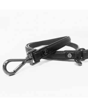 Collar sizes : 25 to 60 / width 1,5 to 3 cm / Leashes sizes : length 120/100cm - width 1,5/2cmBlack or taupe leather-like Collar/leash Lining in black or taupe leather-like materialTitanium or golden colour metal endingsDecorative titanium or golden colour metal chain fixed with 2 titanium or golden colour rivets