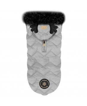 • Closes under the stomach with golden snaps, engraved "M&P"
