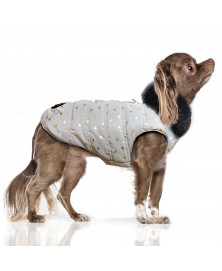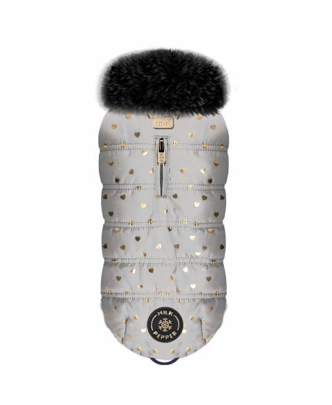 • Pearl grey polyester with golden hearts printing (water-repellent)