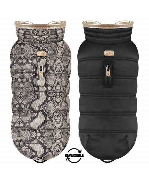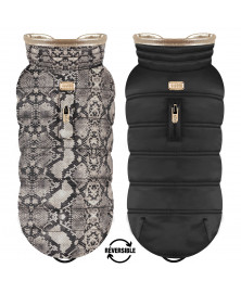 • Reversible padded jacket - one side with an exclusive grey/taupe snake print - one side in satin black polyester