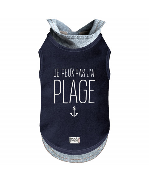 • Sleeveless T-Shirt/Shirt in navy interlock with collar and light blue Chambrai at the bottom
