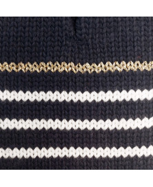 Sailor sweater for small/middle-sized dogs + Bulldogs (L sizes)Striped Navy/off-white with a golden-thread stripeWoven navy/off-white sticker "Yachting"Leash hole on the collarEasy leg passageElastic for the tail