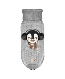 Sweater for small/middle-sized dogsChristmas Sweater in light-grey/off-white knitted JacquardPinguin head in off-white Jacquard weaved with golden and black sequinsSmall golden "Milk&Pepper" plate on the bottom of the backLeash hole on the collarEasy leg passageElastic for the tail