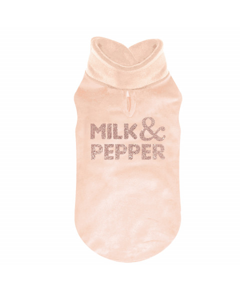 Black or pink velvet stand-up collar sweater for small and middle-sized dogsTitanium or pink colour glitters in screen-printing "Milk&pepper"