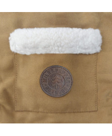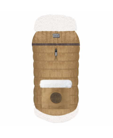 Size L)In camel quilted fantasy suedeBack top leather-like bandship-like fur liningship-like pocket on the backSmall Titanium colour plate"Milk&Pepper" plate on top of the backBrown leather-like sticker on the pocketZipped hole for the leash on the backRemovable-adjustable part with titanium colour metal engraved "M&P" snaps Elastic for the tail