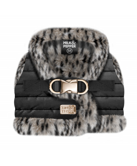 • Black nylon quilted puff jacket harness created especially for small and medium dogs (water-repellent)