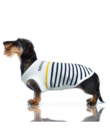 Middle-sized/small dogs tee-shirt + french bulldogs + DachshundNavy/off-white sailor T-shirtOne yellow printed stripe and navy printing "Bienvenue à Bord"Navy/off-white/titanium colour "Yachting" woven patch