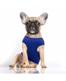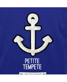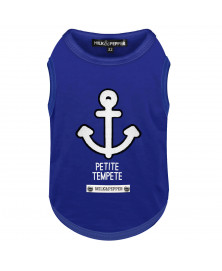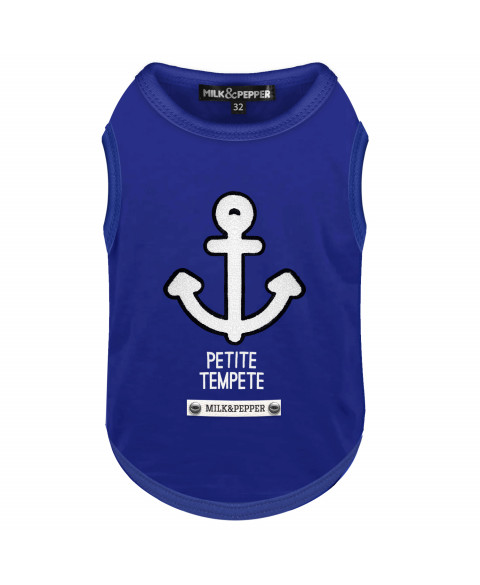 Ultramarine T-shirt for middle-sized/small dogs + french bulldogsnavy felt anchor and off-white Chenille Embrodery on the backOff-white "Petite Tempête" PrintingOff-white strap with titanium colour small buttons - navy "Milk&Pepper" Printing