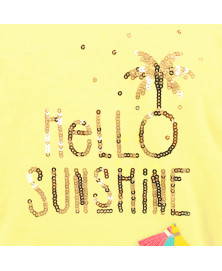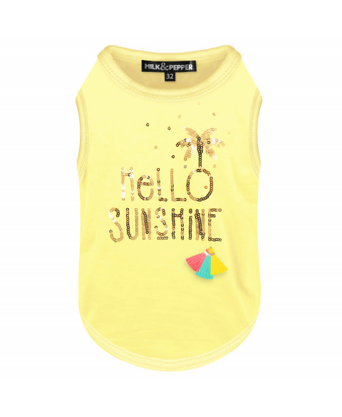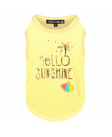 Yellow T-shirt for middle-sized/small dogs "Hello Sunshine" gold sequins embroiderySmall yellow/turquoise/coral tassel