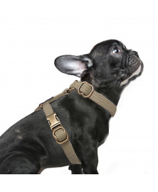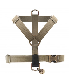 )"H" adjustable harness in stiched beige or Khaki gabardine with black vintage leather-like finishingBronze colour metal buckles (Clip/D-Ring)Bronze colour metal medal engraved "M&P"