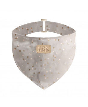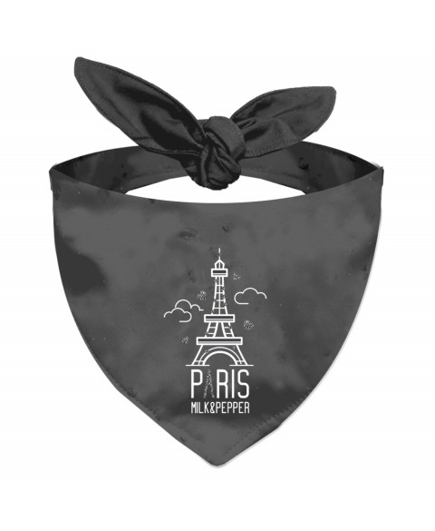 Anthracite grey Interlock Tie-on bandanaLined with anthracite grey InterlockPrinted "Paris" in off-white and titanium colour glitters