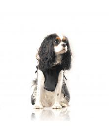 • Opening on the back allows any leash to easily clip through the jacket to the harness or collar ring