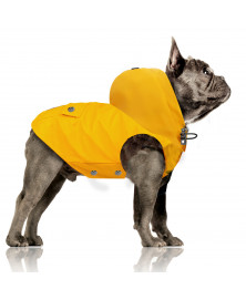 • Yellow 100% waterproof sleeveless raincoat with removable hood,