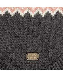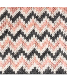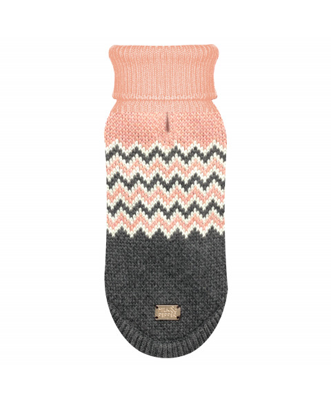 • Pink and grey turtleneck sweater, with zigzag stripes, ""Vintage Ski"" spirit