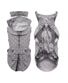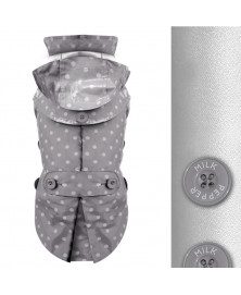 • Imperméable toile cirée grise avec petit pois blanc.