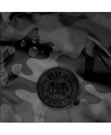 • Petite plaque en métal titan  "Milk&Pepper" sur la capuche