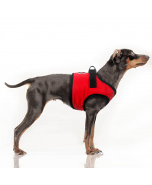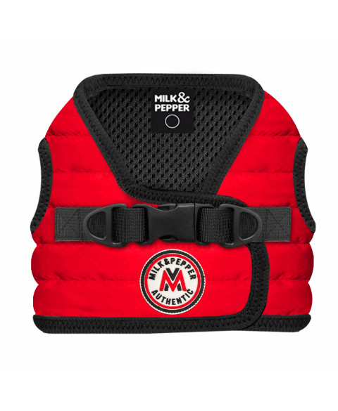 • Harnais « doudoune » en polyester matelassé (traité déperlant) disponible en rouge, rose et anthracite