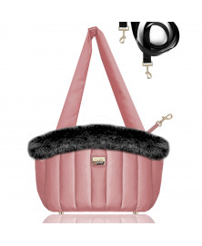 • Sac matelassé en polyester matelassé taupe et fil métallisé (traité déperlant) ou en polyester matelassé bois de rose avec surimpression de micro pois (traité déperlant)