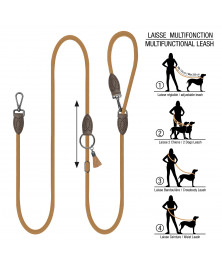 • Laisse Multifonction en polyester tressé et imitation cuir Vintage