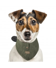 • Petite patte en gabardine beige ou kaki avec petit bouton bronze