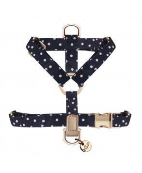 • Laisse en polyester imprimé marine à pois rose et imitation cuir vintage taupe