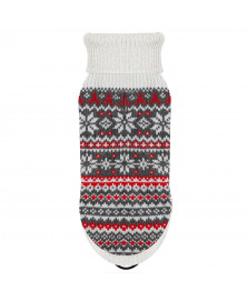 • Pull jacquard norvégien gris chiné, écru et rouge