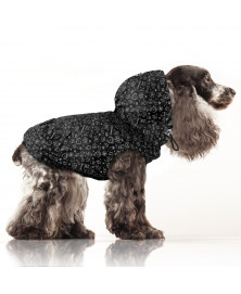 • Matière waterproof noire imprimée avec motifs rock&roll gris clair (imprimé exclusif)