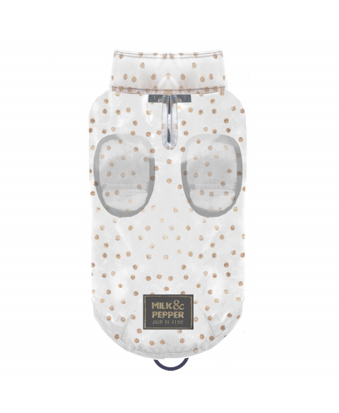• Matière waterproof transparente avec imprimé « pois » en paillettes dorés (imprimé exclusif)