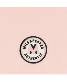 • Badge en feutrine écru et gomme gris anthracitee et noir en bas du dos