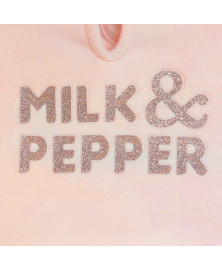 • Sérigraphie « Milk&Pepper » en paillettes roses ou titanes